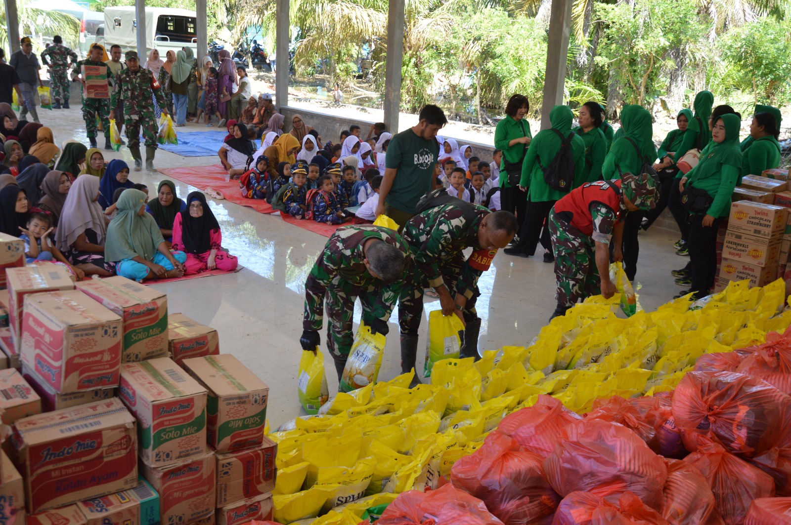 Pada kesempatan tersebut, TNI AD juga menyalurkan bantuan sosial berupa 150 karung beras, 150 kotak mi instan, 40 karton air minum kemasan, 150 paket selimut dan obat-obatan, serta 150 paket makanan ringan untuk anak-anak korban bencana.