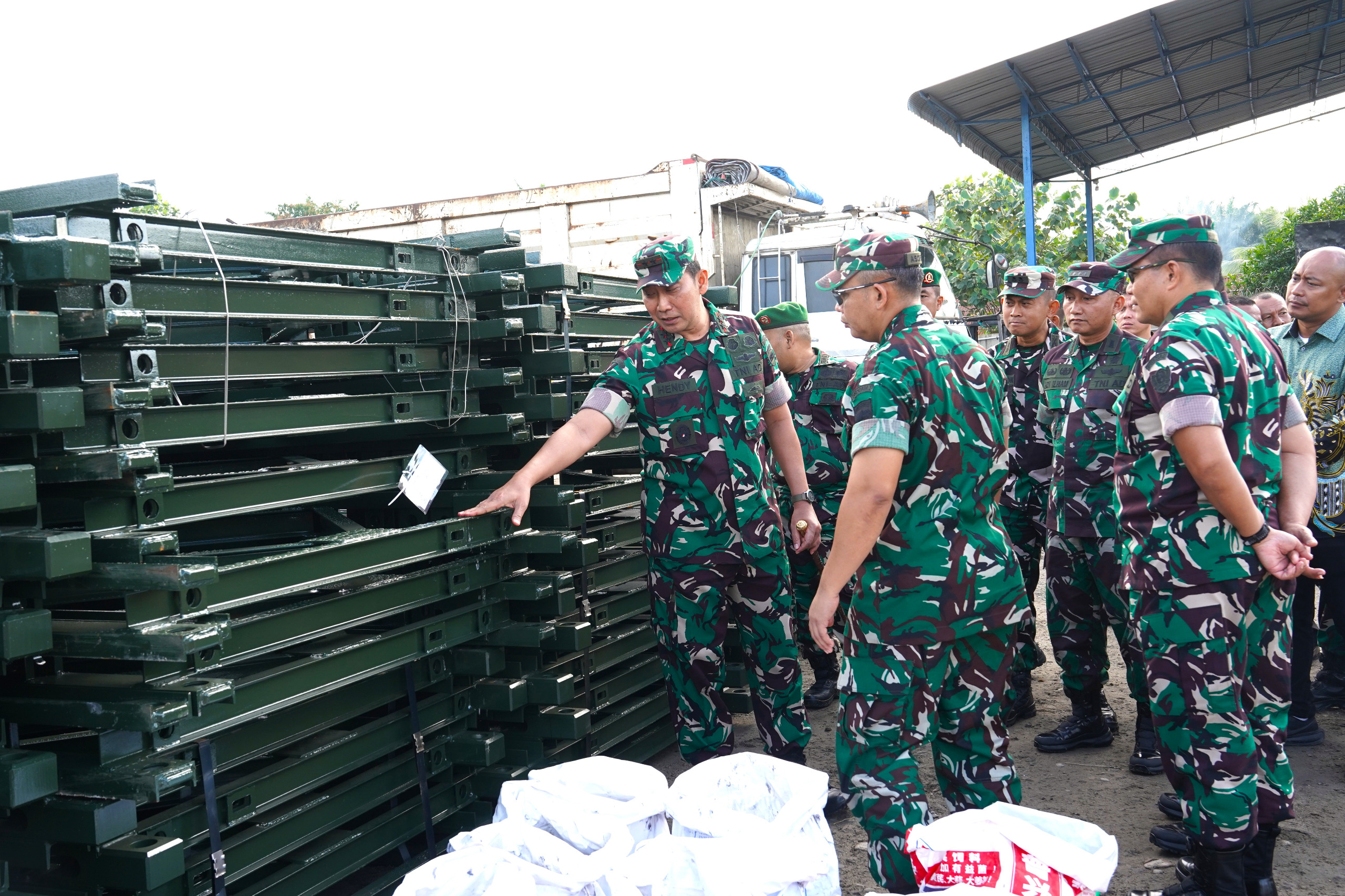 Di lokasi, Pangdam menyaksikan proses pemindahan dan pemuatan material ke atas truk, sekaligus pelepasan pergeseran menuju titik pembangunan. Pemeriksaan dilakukan secara menyeluruh guna menjamin tidak ada komponen yang hilang, tertukar, maupun kurang sebelum diberangkatkan.